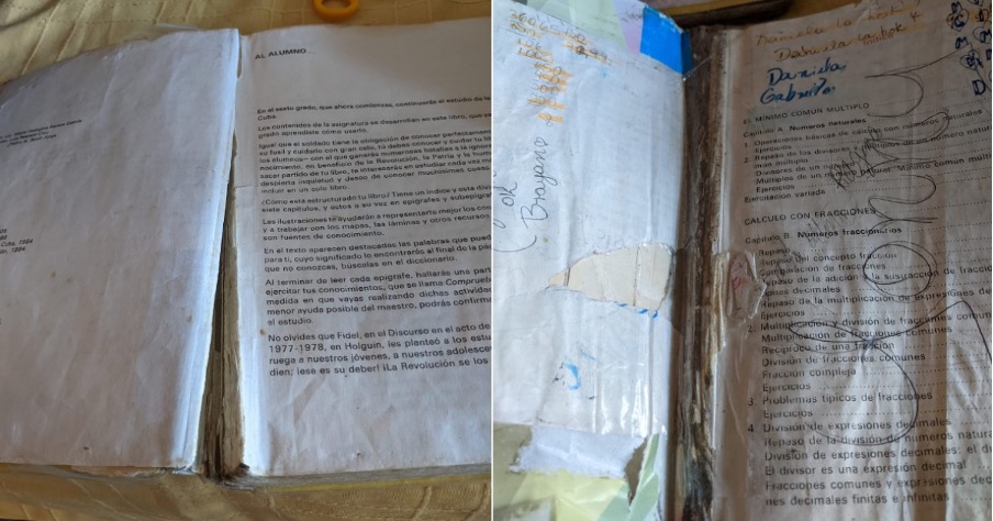 Libros de texto en mal estado para los estudiantes cubanos. Imagen: CiberCuba (2022).
