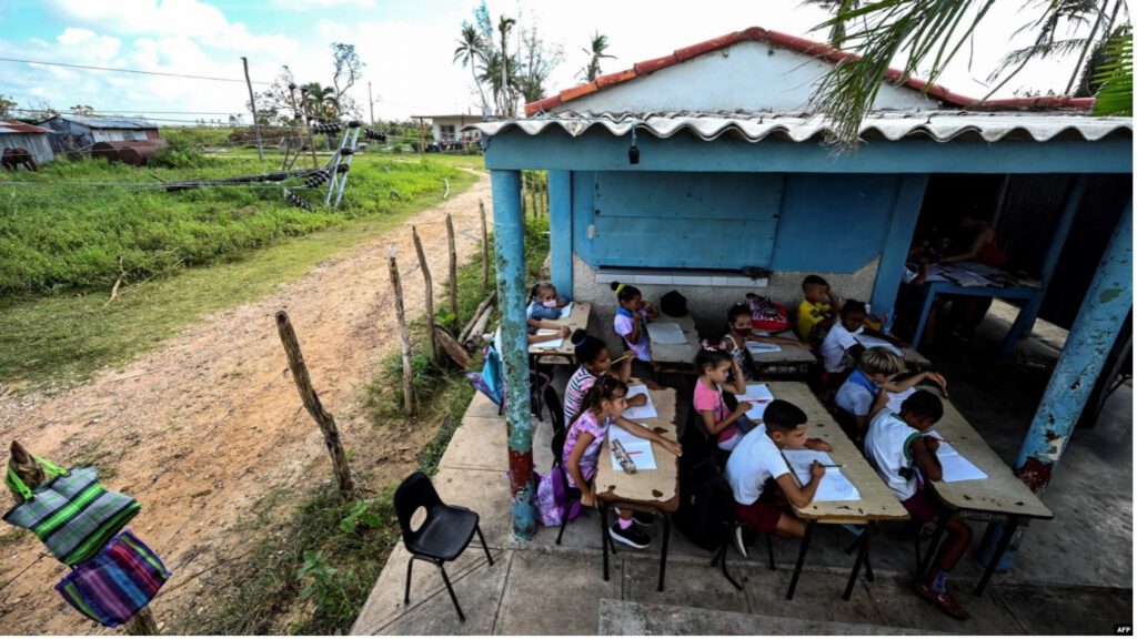 Escuela rural improvisada en la Coloma (Pinar del Río). Imagen: AFP (2022).