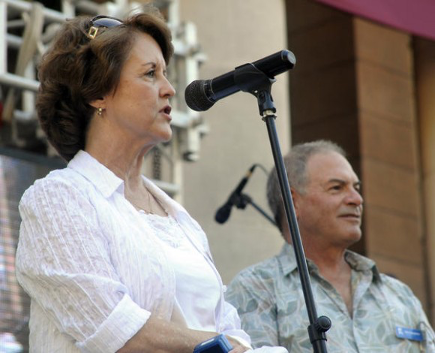 Kathy Torton, astronauta de la NASA, y Nicholas Ianmarino, decano ejecutivo del programa Semestre en el Mar, durante su visita a La Universidad de La Habana. Fuente: Cubadebate (2013).