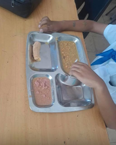 Almuerzo escolar en el seminternado Don Bosco, Santiago de Cuba. Fuente: muro de Facebook de Yosmany Mayeta Labrada (2025).
