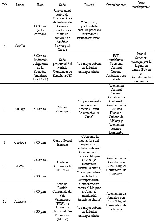 Aunque esta gira ha sido organizada por el MESC, resulta preocupante el hecho de que algunas casas de altos estudios españolas sean sede de estos eventos. Al menos en el último quinquenio, universidades como la Complutense y la Autónoma de Madrid, las de Salamanca, Barcelona, Valencia y la Pablo de Olavide, por ejemplo, han acogido a “expertos” cubanos vinculados directamente con programas o instituciones políticas en la Isla, o incluso académicos que han participado en actos de censura, expulsión y difamación de colegas.