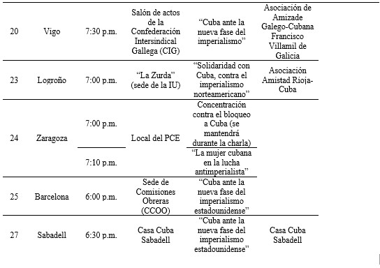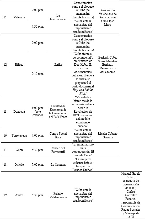 La prohibición de entrada a este tipo de actos a la comunidad cubana en el exilio le evita al Gobierno críticas y una pluralidad de voces frente a un público que prefiere que vea solo en su dirección. Inclusive, los mismos grupos que respaldan estos eventos llegan a reproducir el discurso oficialista de la Isla. Por ejemplo, la Sociedad Cubano-Andaluza José Martí, en entrevista a Marxlenin Pérez, utiliza los términos “contrarrevolución” y “campañas de linchamiento” para referirse a los cubanos exiliados y a los cuestionamientos y críticas al gobierno de Cuba, así como a las denuncias de las violaciones de los derechos humanos en la Isla. Empero, aun desde este papel de víctima en que la sitúa la Asociación —junto a integrantes del programa Con Filo, como Gabriela Fernández—, su respuesta confirma que el Gobierno mantiene una guerra comunicacional para defender “la causa de Fidel Castro”, que “agentes externos” tratan de desprestigiar mediante asesinatos de reputación.