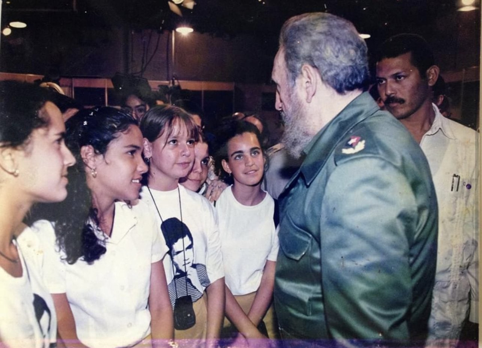 Marxlenin Pérez (centro) con pulóver de la campaña mediática sobre Elián González, en un encuentro con Fidel Castro. Imagen: ADN Cuba (2022).