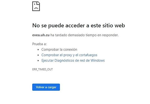 Intento de acceso al Entorno Virtual de Enseñanza y Aprendizaje (EVEA) implementado por la Universidad de La Habana. Tomada el primero de marzo de marzo de 2021, día del inicio de curso. (Cortesía de Cuba Noticias 360)