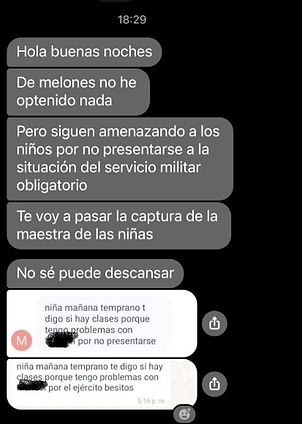 Los vecinos de la comunidad de Melones continúan bajo el hostigamiento de las autoridades, que les impiden declarar a la prensa independiente bajo riesgo de ir prisión. Paralelamente, se insiste en el alistamiento de jóvenes en edad militar.