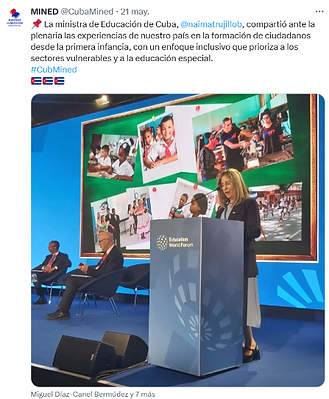 “Durante su intervención, la ministra cubana destacó los logros del sistema educativo de Cuba, como el acceso universal a la educación, la igualdad de género y la formación docente”, publicó Cubadebate.