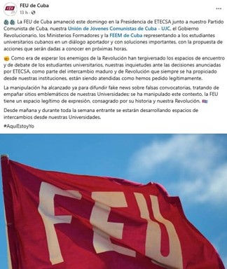Ante ese escenario, la dirección nacional de la FEU anunció que mantuvo un encuentro con la presidencia del monopolio estatal Etecsa, junto a funcionarios del Partido Comunista de Cuba (PCC), la Unión de Jóvenes Comunistas (UJC), y otros dirigentes gubernamentales.