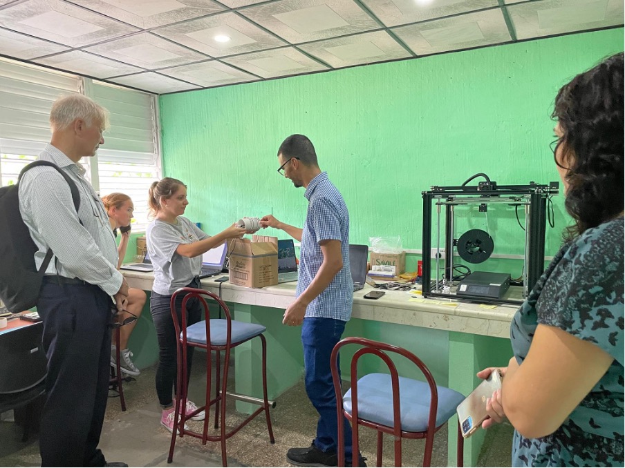Para un seguimiento sistemático, Benedikt siguió visitando el país desde 2022. Así, el pasado 2024 intercambió con alumnos de tercer año de Ingeniería Informática integrantes del proyecto y con profesores del Área de Fabricación Digital de la Universidad José Martí.